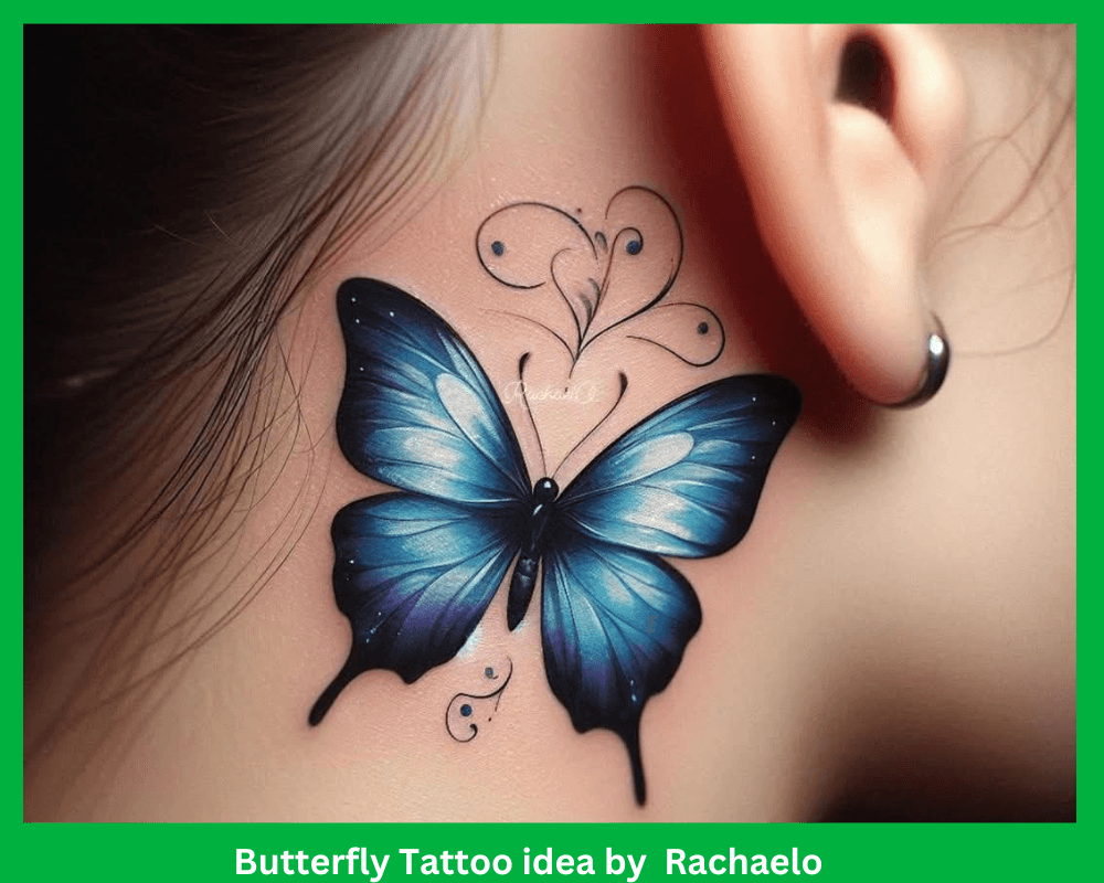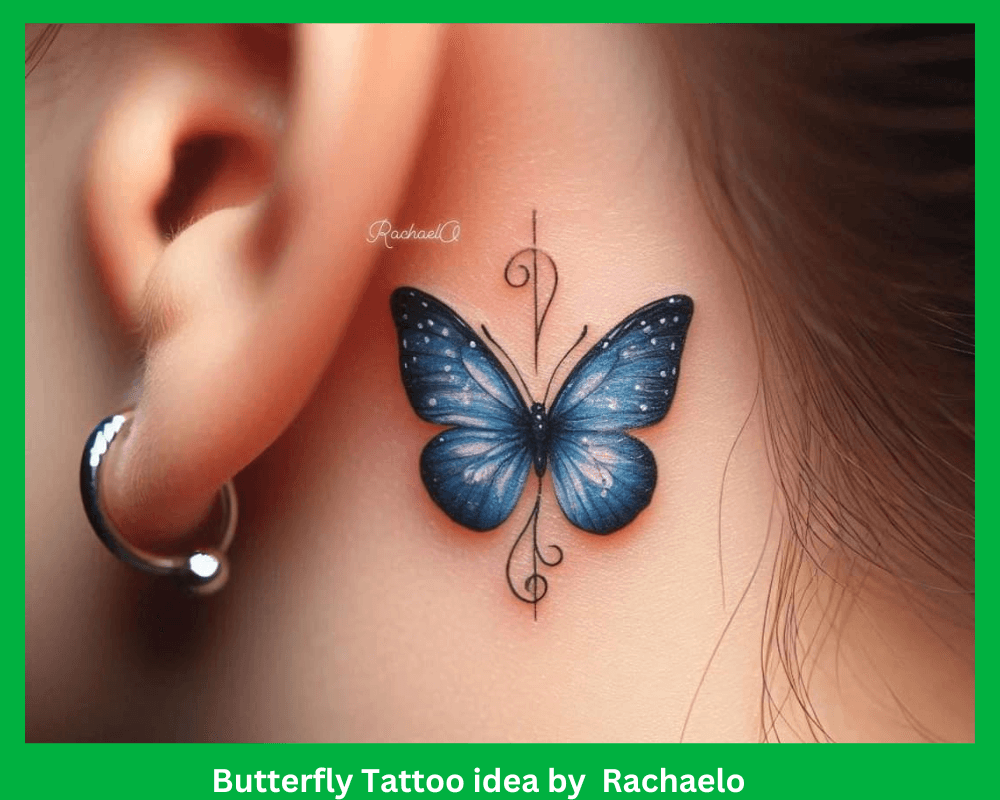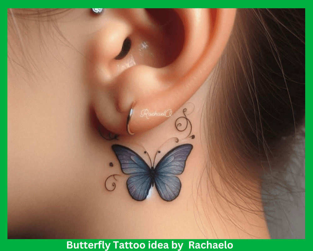 Butterfly Tattoo Behind the Ear– A butterfly tattoo behind the ear is hidden but cute. This location is perfect for minimalist or smaller designs, and it adds some sophistication.