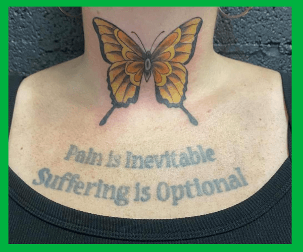 Artist selection is everything when it comes to neck tattoos. Neck tattoos take a certain skill to place correctly and some tattoo artists purposely stay away from the neck area, so make sure your artist is experienced and up for the challenge. Find an artist who has neck and (especially if relevant) butterfly tattoos in their portfolio, as he would know how to run the design style at all. Also look into online reviews, social media, and tattoo groups to make sure you’re getting a reputable artist.